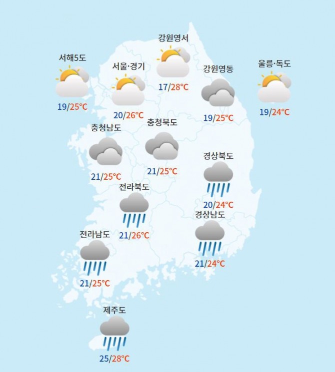 일기예보 기상청 전국 오늘의 날씨 및 내일 날씨 예보 서울 부산 인천 제주도 등 전국 곳곳 비 모레 반짝 추위 정보통신신문
