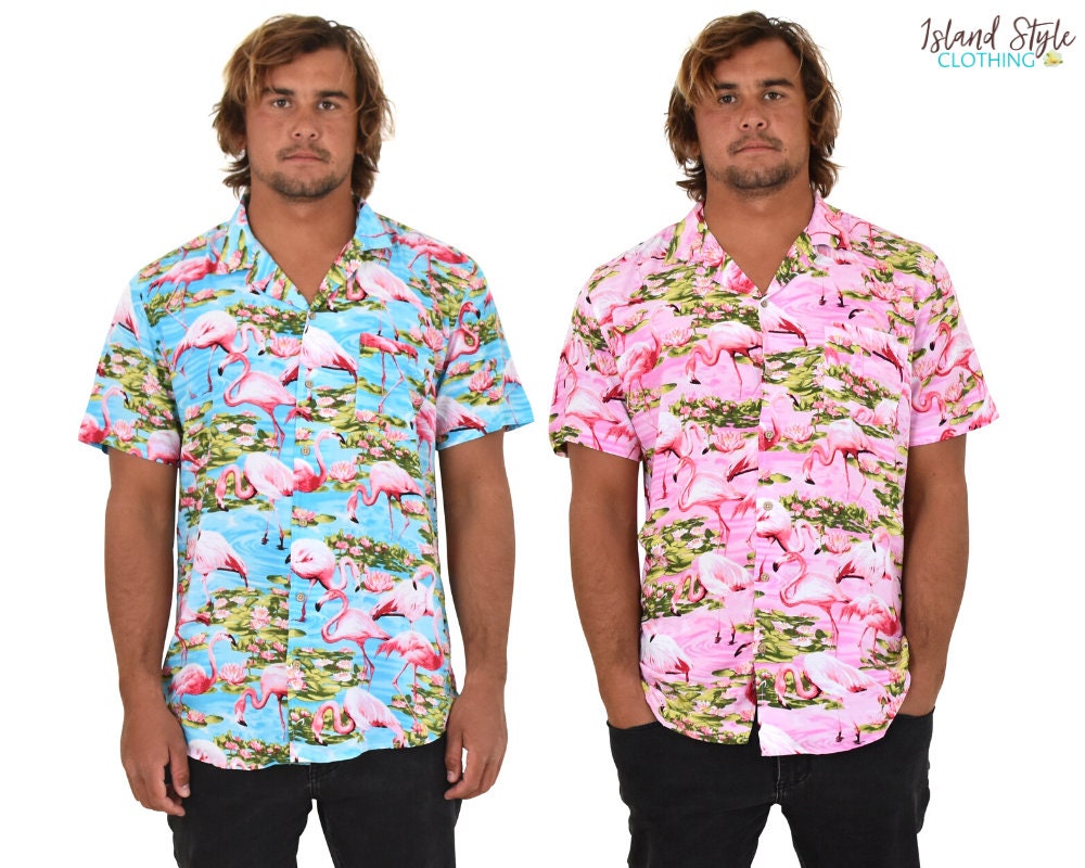 Mens Hawaiian Shirts Flamingo Print Tropical Aloha Festival Etsy Canada