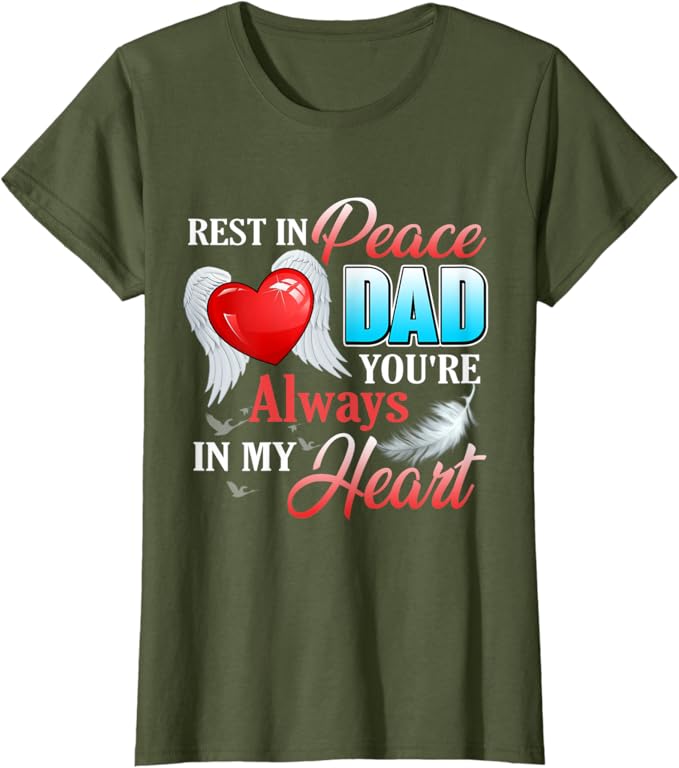 Amazon Com Rest In Peace Dad You Re Always In My Heart Gift Loss Dad T Shirt Clothing Shoes Jewelry
